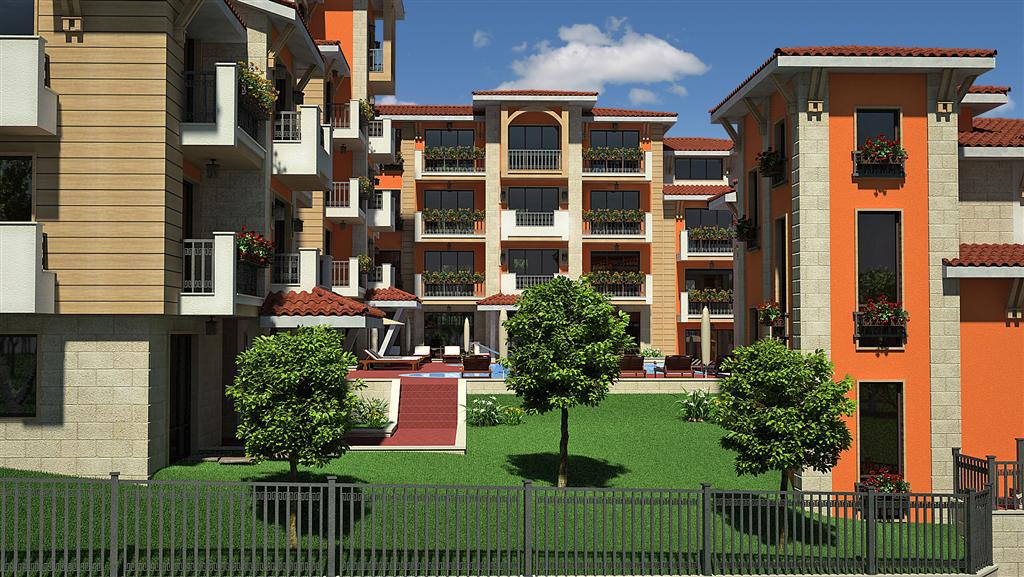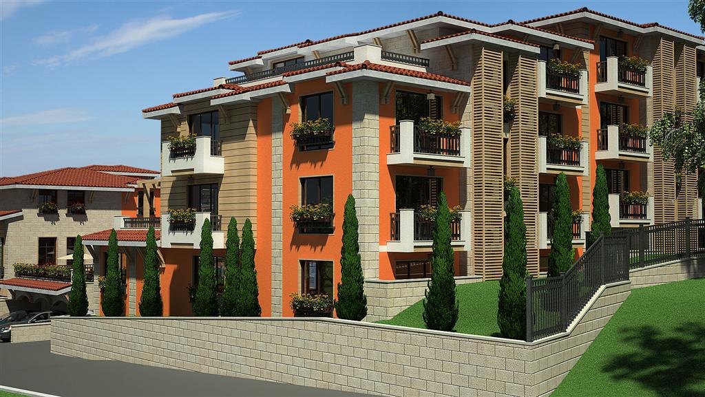 There are built up 50 apartments – 10 studios, 28 one bedroom apartments and 12 two bedroom apartments. The apartments offer big comfortable terraces. Their area starts from 40 square meters up to 110 square meters.