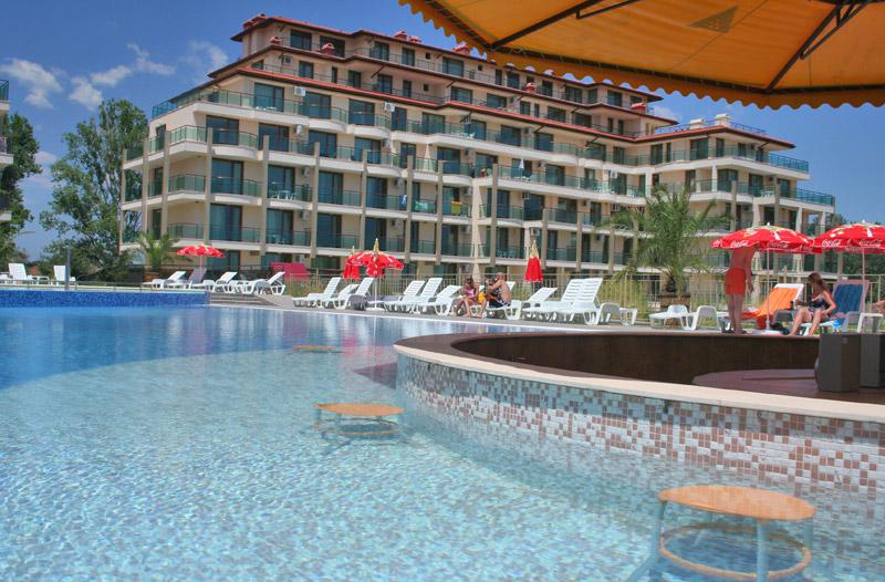 The luxurious vacation complex is located in ecologically clean area of the beautiful coastline town Primorsko. The complex is built up on the first line of the sea. The beach here is 4,5 kilometers wide and covered by fine golden sands. The clean sea waters of the bay, the freshness of the oak forests around and the spacious open territory here give this place unique romance and harmony. The sunny weather continues more than 300 days yearly.