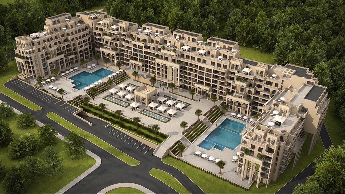 There are as well: kindergarten, two swimming pools for adults and two for children, indoor swimming pool with mineral water, children playground, SPA center, sauna, Jacuzzi, Turkish Bath, supermarket with various products, year round functioning massage center, fitness, billiard, BBQ, children playground, tennis, parking area, restaurant, garages.