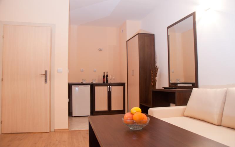 In countless restaurants can taste the varied and delicious Bulgarian cuisine mainly with Rhodopi region. In summer tourists can enjoy peace and quiet mountain, colorful fertile fields and evergreen coniferous forests. Places worth visiting are: Smolyan lakes, the beautiful village of Shiroka Luka - architectural, ethnographic, folklore Reserve (12km), etc.  SPA-complex is located in the \Raikovski Livadi (\" Raikovski glades \") in the resort of Pamporovo. Ski resort Pamporovo is situated at a height of 1700 m.. above sea level. The building is located 800 meters away from the existing lift station Studunets \"and in close proximity to the future of super modern sports and tourist center Perelik, whose construction is stipulated soon be realized. Distance from nearest airport \"Plovdiv\" only 1 hour.