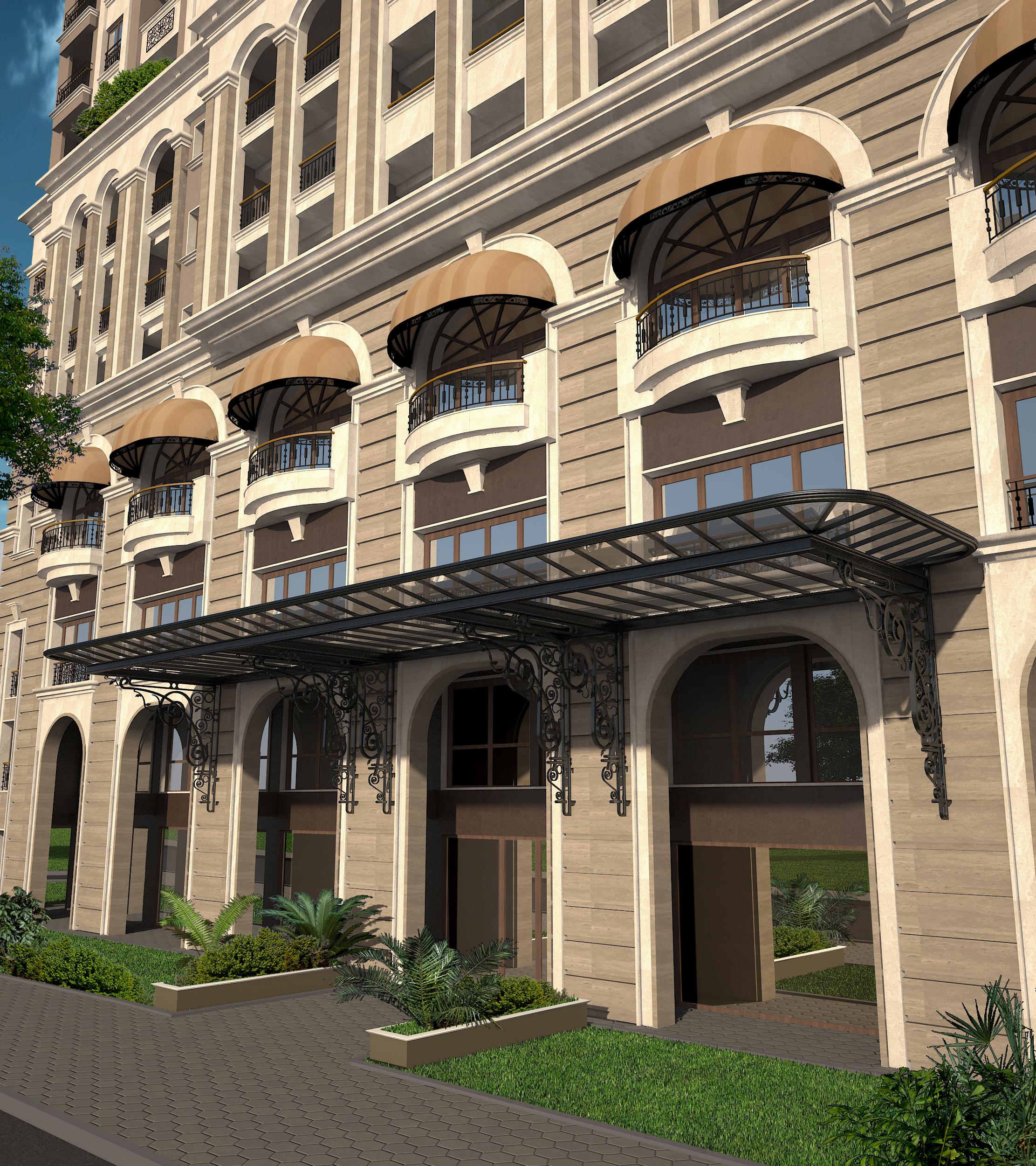 Offers 179 apartments - studios and apartments with one, two and three bedroom apartments, ranging from 46 to 324 sq.m. All apartments are finished "turnkey": Flooring - parquet, ceramic granite tile and carpet-to-order; painting ceilings, painting and wallpaper on the walls, fixtures and sanitary ware in the bathrooms and toilets. Common areas with marble and carpet on the floor, on the walls will use a combination of painting and wallpaper in pastel colors, built in lighting on the ceiling, painting, emphasizing the style of the building and the windows as the finishing detail.