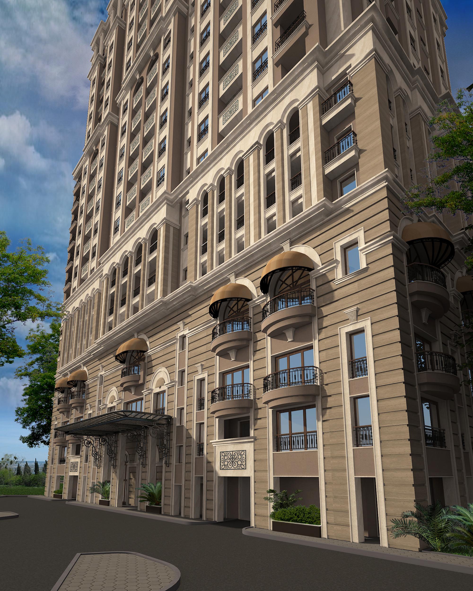 Offers 179 apartments - studios and apartments with one, two and three bedroom apartments, ranging from 46 to 324 sq.m. All apartments are finished "turnkey": Flooring - parquet, ceramic granite tile and carpet-to-order; painting ceilings, painting and wallpaper on the walls, fixtures and sanitary ware in the bathrooms and toilets. Common areas with marble and carpet on the floor, on the walls will use a combination of painting and wallpaper in pastel colors, built in lighting on the ceiling, painting, emphasizing the style of the building and the windows as the finishing detail.