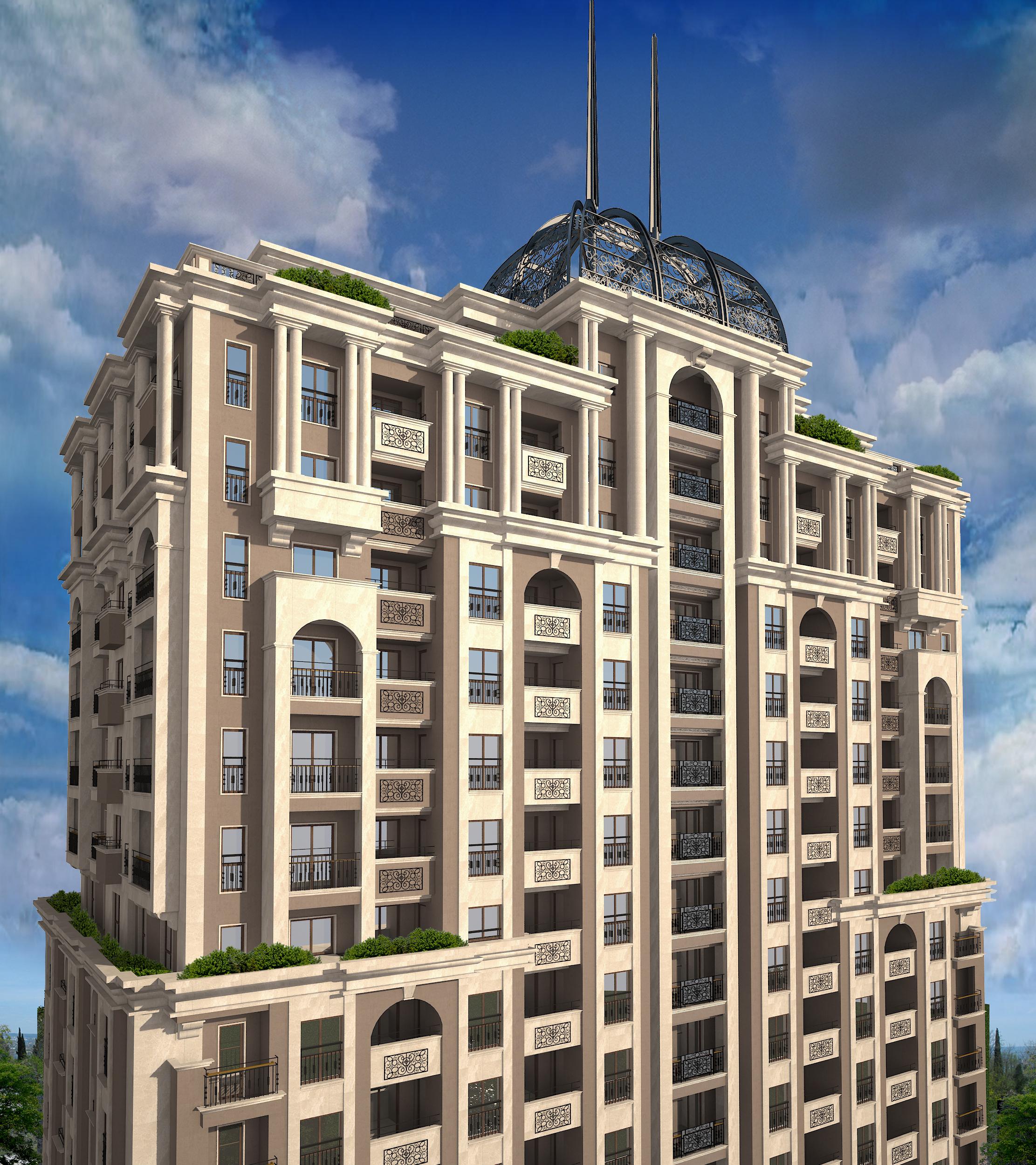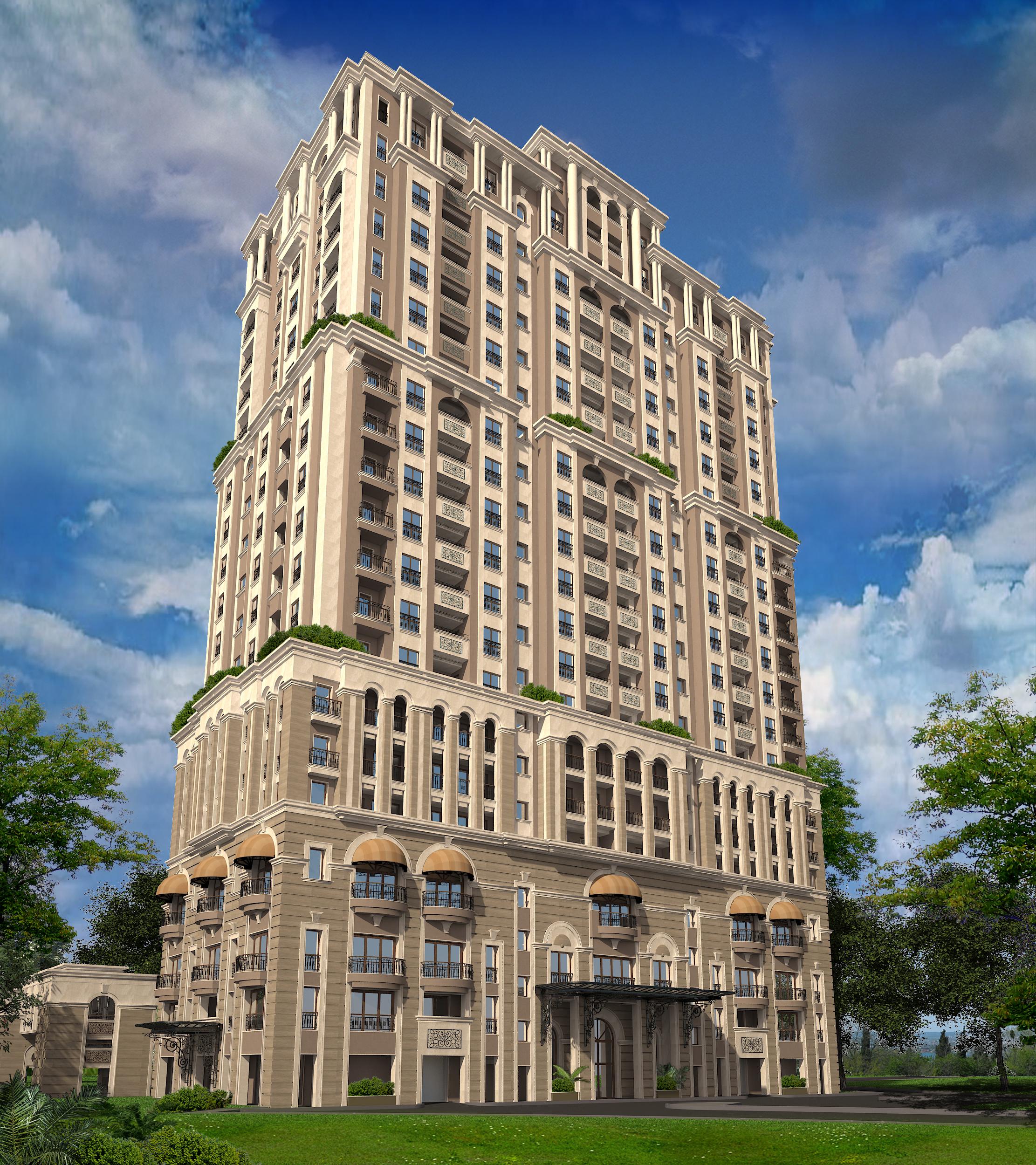 Offers 179 apartments - studios and apartments with one, two and three bedroom apartments, ranging from 46 to 324 sq.m. All apartments are finished "turnkey": Flooring - parquet, ceramic granite tile and carpet-to-order; painting ceilings, painting and wallpaper on the walls, fixtures and sanitary ware in the bathrooms and toilets. Common areas with marble and carpet on the floor, on the walls will use a combination of painting and wallpaper in pastel colors, built in lighting on the ceiling, painting, emphasizing the style of the building and the windows as the finishing detail.
