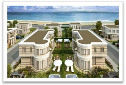Всего по проекту 132 дома разной площади - от уютных компактных / 89 кв.м. / до шикарных вилл /310 кв.м./ Для удобства владельцев каждый дом имеет бассейн, парковка на 1 автомобиль, собственный небольшой дворик с местом для барбекю и для игр детей. Комплекс имеет личный благоустроенный пляж.