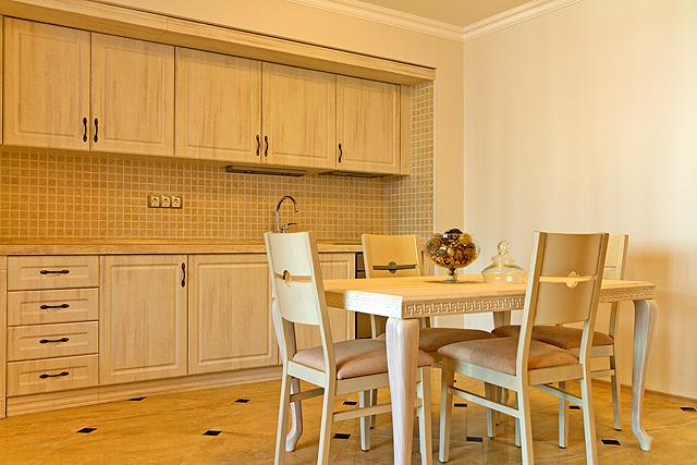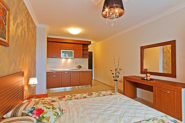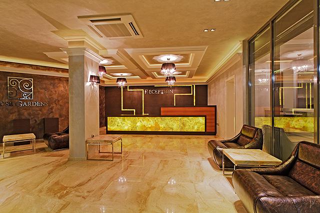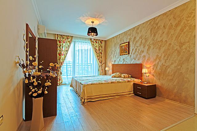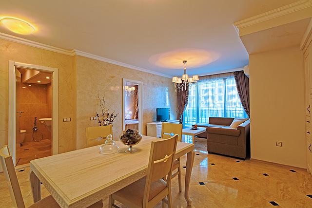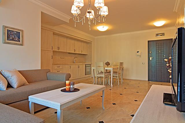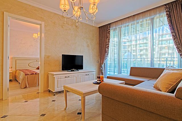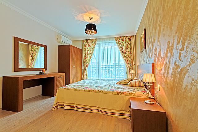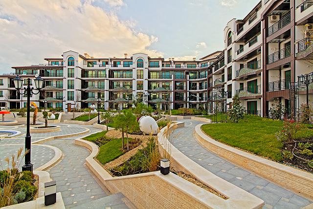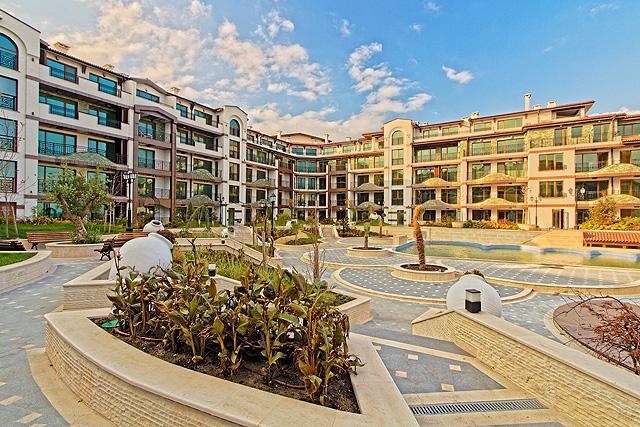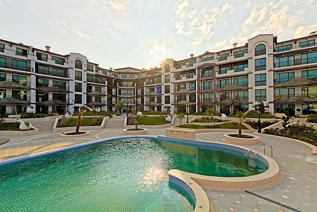 Построен из высококачественных естественных материалов (мрамор, дерево, гранит и кованого железа), комплекс (23 000 кв.м.) состоит из 8 пятиэтажных корпусов с отдельными подъездами, оборудованными лифтом, в которых расположены 257 полностью отделанных апартаментов (студии, двухкомнатные, трехкомнатные, четырехкомнатные и пентхаусы) с просторными балконами с видом на море. Окна выполнены во французском стиле.