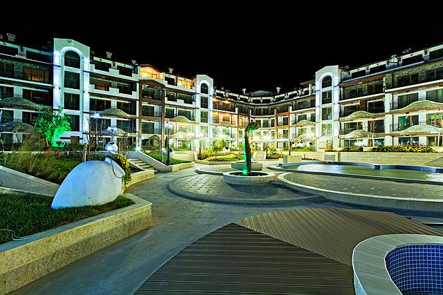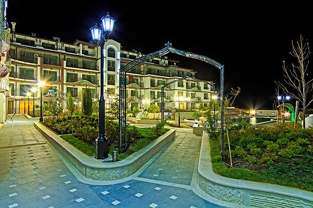 Четырехзвездочный жилой комплекс закрытого типа находится возле озера для добычи соли, в 150 метрах от пляжа, недалеко от центра города Поморие, в 11 километрах от аэропорта г. Бургас. Местоположение комплекса характеризуется хорошо развитой коммунальной и туристической инфраструктурой, что способствует спокойному отдыху на море.