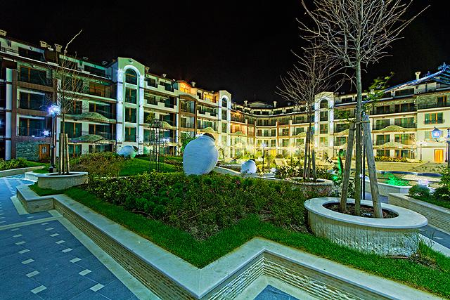 • сад с богатой растительностью, красивыми фонтанами, клумбами, аллеями и местами для отдыха,
