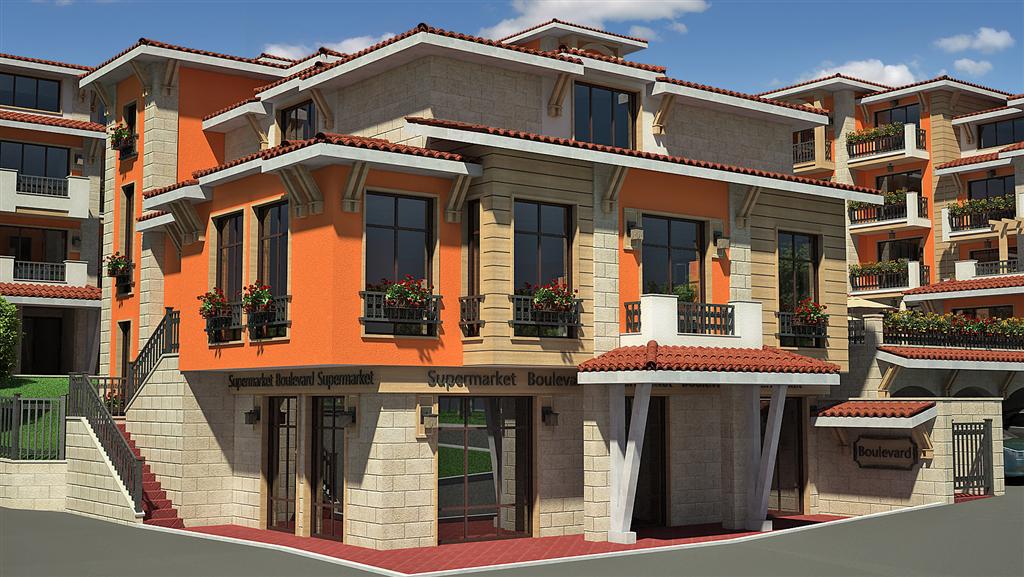 Комплекс состоит из двух корпусов. Первой корпус жилый, во втором расположеные магазин на первом зтаже, ресторан с большой террасой на втором, на третем зтаже расположеные сауна, паровая баня и массажные комнаты.