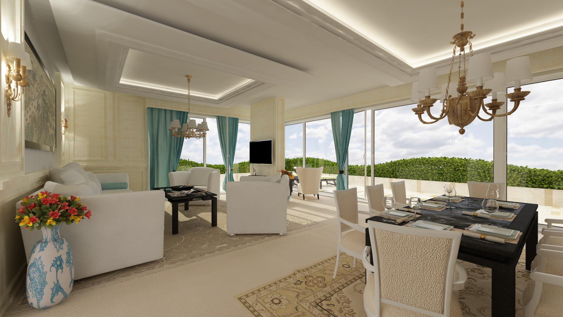 Предлагаются 179 квартир – квартиры-студии и квартиры с одной, двумя и тремя спальнями, площадью от 46 до 324 кв.м. Все квартиры предлагаются с отделкой „под ключ”: напольное покрытие – паркет, керамогранитная плитка и ковролин по индивидуальному заказу; покраска потолков, покраска и обои на стенах, светильники и установлена сантехника в ванных комнатах и туалетах. Помещения общего пользования отделаны мрамором и ковролином на полу, на стенах будет использовано сочетание покраски и обоев в пастельных тонах, встроеннное освещение на потолке, картины, подчеркивающие стиль здания и панорамные окна как завершающая деталь.